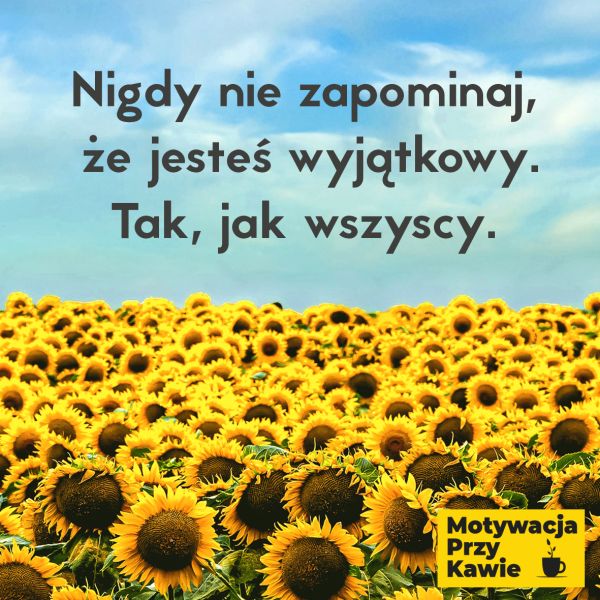 Ale druga strona medalu jest taka, że jesteś jak kawałek puzzla z układanki z tym polem słoneczników – niby wszystkie puzzle są takie same, ale każdy jest unikalny i każdy ma swoje miejsce, do którego idealnie pasuje i bez którego układanka by się nie udała.